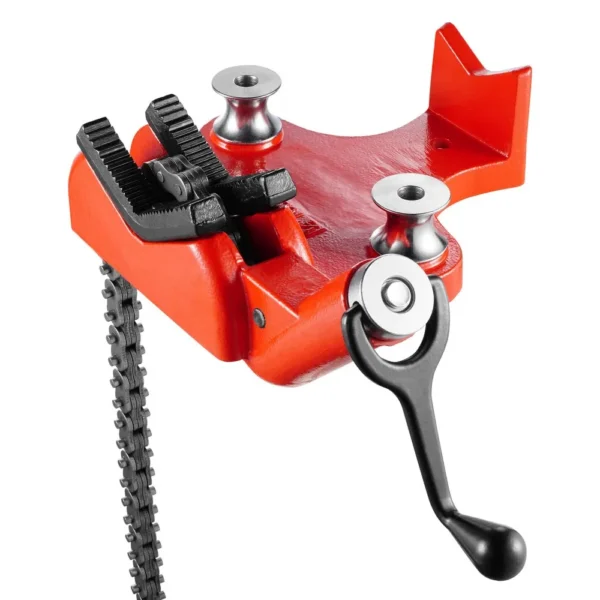 Robusto y duradero: Con una base robusta de hierro fundido, mordazas en V antideslizantes y una cadena de alta resistencia, este tornillo de banco de cadena para tuberías ofrece una sujeción estable y precisa, garantizando una sujeción segura de la tubería sin causar daños.