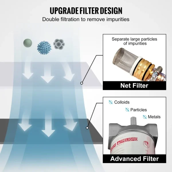 Diseño de filtro mejorado: En comparación con otros productos, nuestro tanque de transferencia de combustible está equipado con un filtro dúplex para ofrecer diésel más puro. El filtro frontal del tanque interior puede separar partículas grandes de impurezas, y el filtro exterior premium está diseñado para filtrar impurezas pequeñas como metal, coloides, partículas diminutas, etc.
