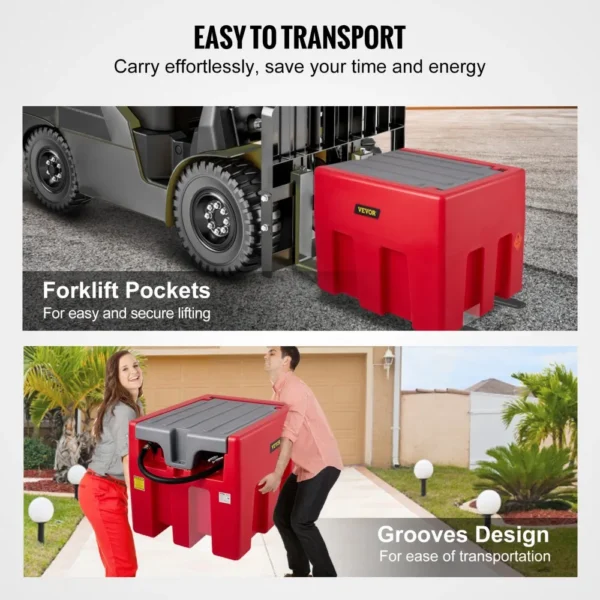 Transporte Fácil: Sus dos ranuras facilitan y aseguran el transporte de este tanque de diésel. El diseño integrado para montacargas garantiza una elevación estable sobre el vehículo. Gracias a estos excelentes diseños, nuestro tanque de diésel se utiliza ampliamente en camiones, tractores, barcos, autocaravanas, industrias al aire libre, construcción, etc. ¡Arranca el motor y prepárate para trabajar!